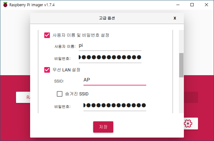 순차적으로 라즈베리파이 내부에서 사용할 사용자이름 / 비밀번호