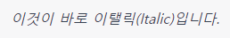 *이것이 바로 이탤릭(Italic)입니다.*